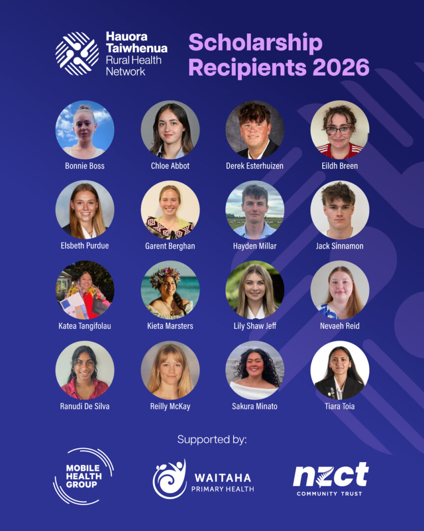 Sixteen rural rangatahi with a shared goal – to return home and serve the communities that shaped them – have been named recipients of the 2025 Hauora Taiwhenua Rural Health Network Scholarships.